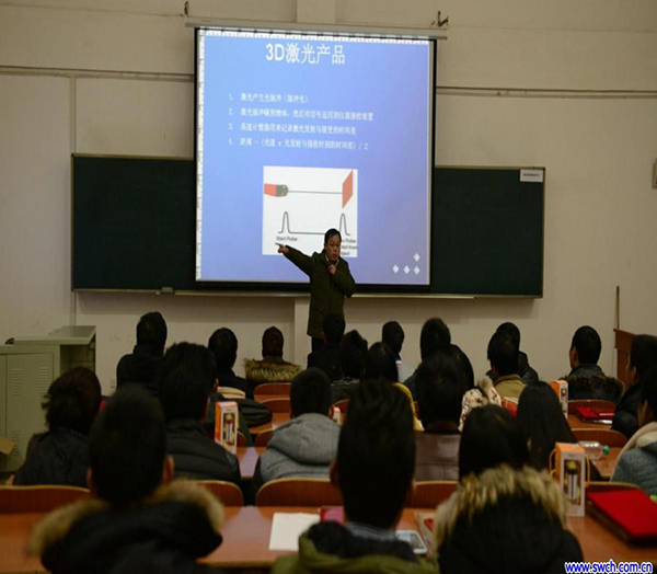 會上,南昌三維總經理蔡紹青先生首先向學校師生們介紹公司的主要產品,如3D激光產品、GPS、拓普康全站儀、天寶電子水準儀等測繪產品,并表示測繪大賽不僅可以增加學生的興趣愛好,豐富它們的大學生活,也可以提高他們的測繪技術,使測繪水平達到另一個層次,在座的師生全神貫注的聆聽這一講座,并受益頗多。同時,他強調,南昌三維貫徹著以“質量為先,信譽為誠,服務為宗”的宗旨。