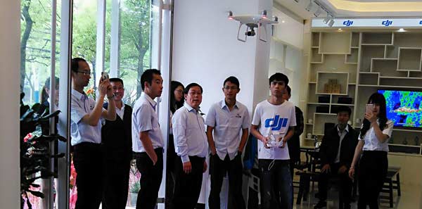 現(xiàn)場,我們的飛手給大家展示了精靈四。絡繹不絕進店參觀的客人更是對無人機表達了很濃厚的興趣。